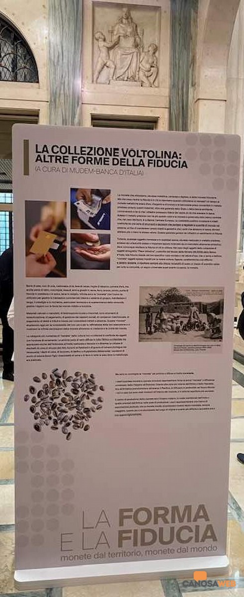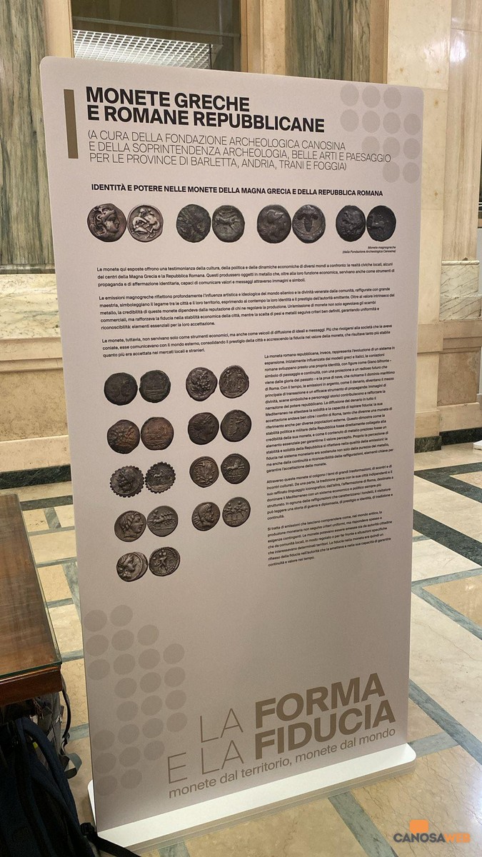 La Sede di Bari della Banca d'Italia sta ospitando la mostra "La forma e la fiducia – Monete dal territorio, monete dal mondo", un percorso espositivo che esplora il tema della fiducia come fondamento della moneta, dal 30 settembre 2025. L'anteprima, riservata ad Autorità e stampa, si è tenuta alle ore 10.00 di lunedì 29 settembre presso la sede di Bari della Banca d'Italia, in Corso Cavour n.4 ed aperta dai saluti istituzionali di Marcello Malamisura, Direttore della Sede di Bari della Banca d'Italia, e di Vito Leccese, Sindaco di Bari. Seguiranno gli interventi di: Magda Bianco, Capo del Dipartimento Tutela della clientela ed educazione finanziaria della Banca d'Italia; Francesca Romana Paolillo, Soprintendente Archeologia, Belle Arti e Paesaggio per la Città Metropolitana di Bari; Anita Guarnieri, Soprintendente Archeologia, Belle Arti e Paesaggio per le Province di Barletta, Andria, Trani e Foggia; Sergio Fontana, Presidente della Fondazione Archeologica Canosina; Giovanni Di Bella, Comandante del Nucleo Carabinieri Tutela Patrimonio Culturale di Bari. La visita guidata sarà curata da esperti e studiosi delle Soprintendenze, dell'Università di Bari Aldo Moro e del Museo della Moneta della Banca d'Italia. La mostra, organizzata dalla Banca d'Italia in collaborazione con la Soprintendenza Archeologia, Belle Arti e Paesaggio per la Città Metropolitana di Bari, la Soprintendenza Archeologia, Belle Arti e Paesaggio per le Province di Barletta, Andria, Trani e Foggia e la Fondazione Archeologica Canosina, con il supporto di PugliaCulture e ARET – PugliaPromozione, sarà visitabile gratuitamente dal pubblico fino al 31 gennaio 2026 presso i locali della Banca d'Italia a Bari. Attraverso reperti archeologici, oggetti monetali di valore etnografico e contenuti multimediali del Museo della Moneta (MUDEM), l'esposizione illustrerà l'evoluzione della moneta come strumento di fiducia e racconterà le funzioni svolte dalla Banca d'Italia all'interno dell'Eurosistema. La mostra "La forma e la fiducia – Monete dal territorio, monete dal mondo", sarà aperta al pubblico dal 30 settembre 2025 al 31 gennaio 2026. L'ingresso è libero negli orari di apertura al pubblico della Filiale dalle ore 8.15 alle 13.30, dal lunedì al venerdì .