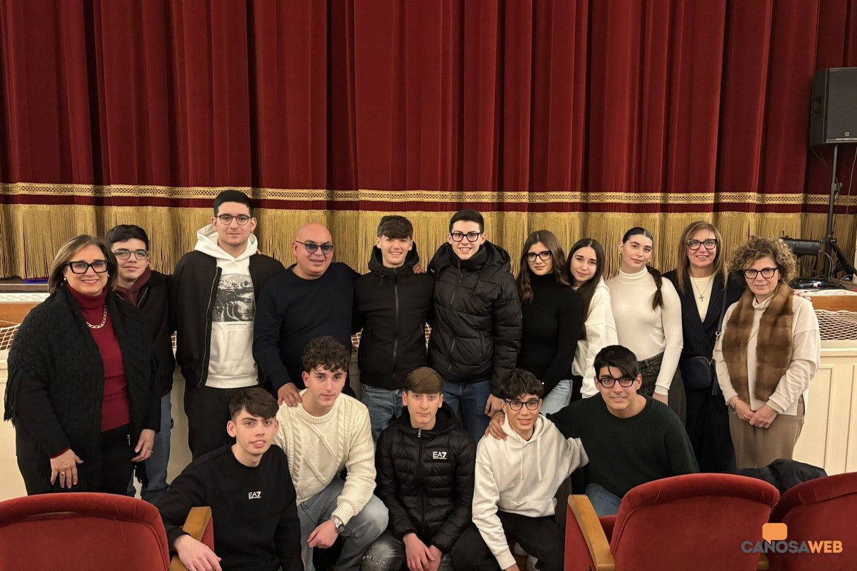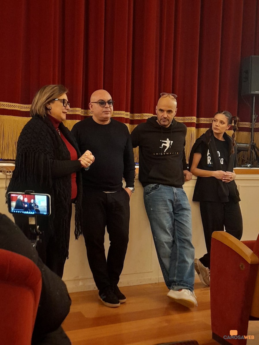 Buona la prima! Positivo esordio dell'iniziativa "Premia la Cultura" nell'ambito della stagione teatrale 2025/2026 che stasera ha avuto luogo nel Teatro Comunale "Raffaele Lembo" di Canosa di Puglia, precedendo lo spettacolo "Algoritmo: lui e l'AI". Protagonisti i due attori pugliesi: Raffaello Tullo e Martina Salvatore che hanno incontrato una rappresentanza di studenti dell'IISS "E.Fermi -L.Einaudi " di Canosa di Puglia, accompagnati dalle professoresse Nunzia Lansisera e Tina Ventola. L'incontro è stato condotto dall'assessore alla cultura Cristina Saccinto che ha dialogato con i presenti, ringraziando Antonio Fasanelli, titolare del "Twins Ristoshow". che ha dato la possibilità agli studenti di confrontarsi e apprendere nuove conoscenze ed esperienze umane e teatrali. Un contribuito non indifferente all'iniziativa "Premia la Cultura" promossa dal Comune di Canosa di Puglia, in collaborazione con le eccellenze imprenditoriali del territorio, finalizzata alla crescita culturale dei più giovani per avvicinarli al teatro, la più antica delle arti. "Benvenuti a teatro. Dove tutto è finto ma niente è falso" Anche una famosa citazione del grande e indimenticato Gigi Proietti nel corso dell'incontro di approccio al teatro : un'arte che attraverso la finzione scenica (tutto è finto) rivela verità profonde e autentiche sull'esperienza umana (niente è falso). Al centro delle attenzioni le relazioni umane con l'intelligenza artificiale portate in scena con lo spettacolo "Algoritmo: lui e l'AI", attraverso un dialogo profondo e significativo sulle fragilità contemporanee. Tra ironia e narrazione lo spettacolo è un invito a riflettere su rischi e benefici dell'intelligenza artificiale, affrontando temi come il progresso, l'identità, la solitudine, il potere umanizzante della musica e "quella polvere che troppo spesso lasciamo che si depositi sui sogni" . La funzione del teatro è molto più immediata e per questo imprescindibile, per via dell'evidente coinvolgimento che si instaura tra spettatori e scena. "Il Teatro, la cultura – evidenzia l'assessore Cristina Saccinto - incontra l'interesse dei giovani, la società civile, il mondo dell'impresa e diventa orgoglio della nostra città". Istituzione, scuola e teatro in perfetta "interconnessione" per esplorare l'IA con intelligenza umana e consapevolezza anche attraverso lo spettacolo.