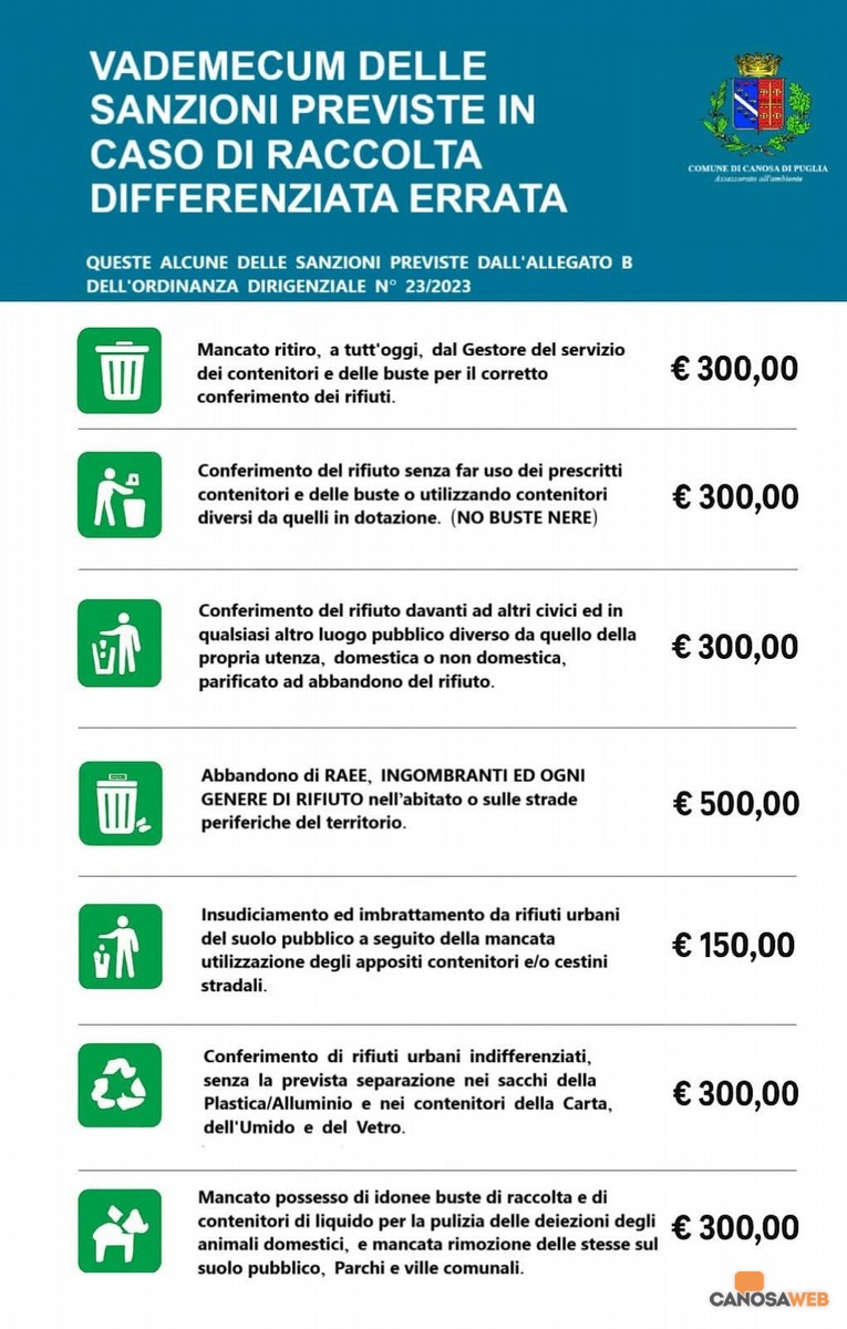 Canosa: Sanzioni per contrastare il conferimento errato dei rifiuti
