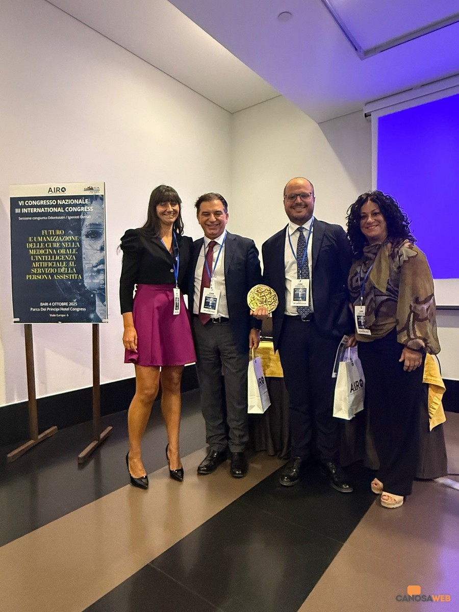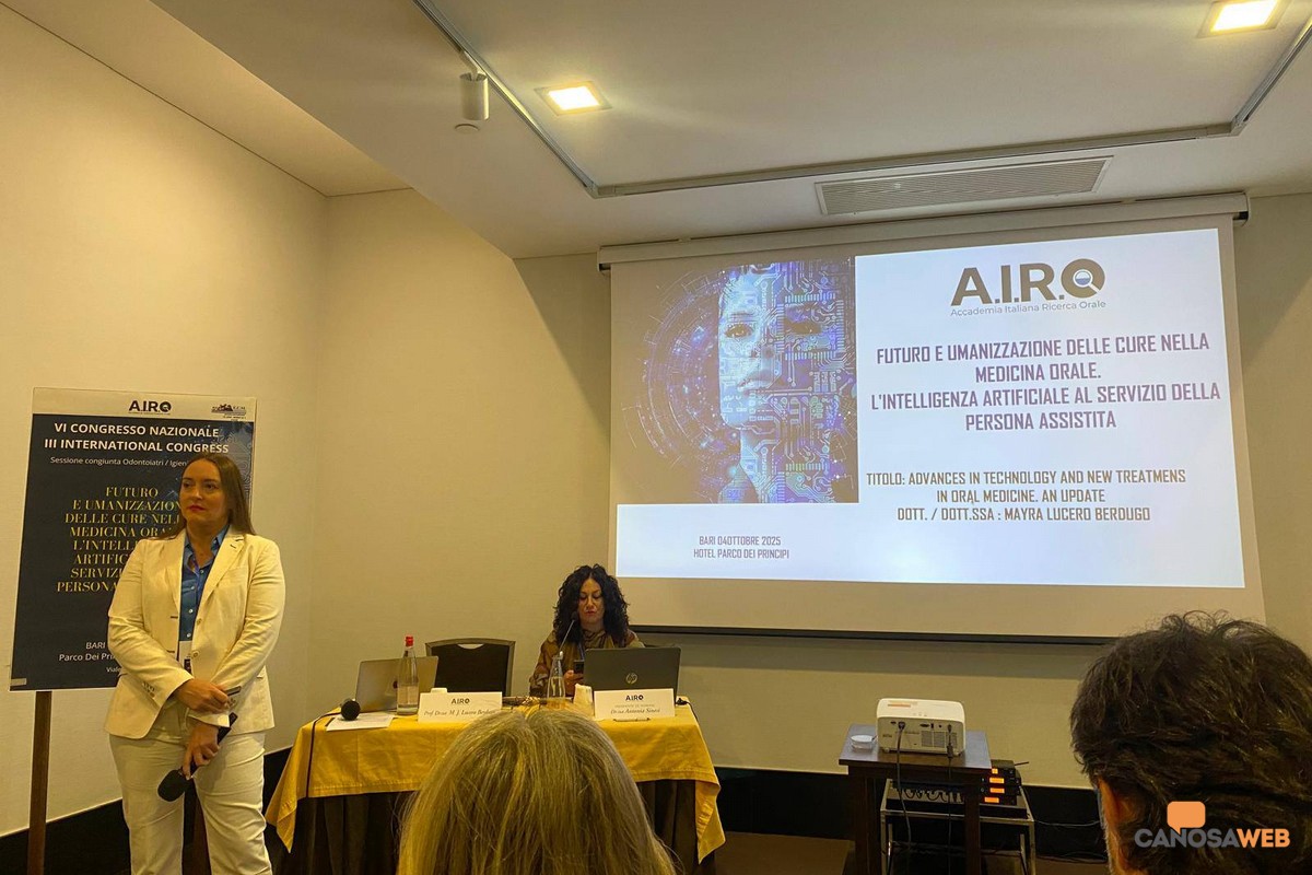 Grandi meriti ai componenti del Direttivo AIRO che hanno contribuito alla buona riuscita del convegno che nel prologo, il presidente Antonia Sinesi , "da donna attaccata alle sue radici" ha dato inizio al congresso, mostrando la foto del particolare del portagioie della principessa Opaka Sabaleida, realizzato dall'artista internazionale Kataos di Canosa di Puglia, catturando l'attenzione del parterre che non riusciva a comprendere l'insolita apertura. Ma poi è risultata chiara la correlazione tra antico e futuro: testimonianza dell'ingegno, dell'identità e della creatività del popolo Dauno. "Nel cuore di un congresso dedicato all'Intelligenza Artificiale, questo dono per relatori e membri di commissione lavori scientifici, vuole essere un ponte simbolico tra il sapere antico e l'innovazione contemporanea. Come gli artigiani di un tempo lavoravano l'oro per trasformarlo e plasmarlo, così oggi - ha tra l'altro dichiarato la dottoressa Sinesi - l'umanità modella l'Intelligenza Artificiale per generare nuove forme di conoscenza. Ma, è sempre la mente umana a dare forma al futuro." Le attività della AIRO, proseguiranno "proficuamente" nel mese di ottobre dedicato alla prevenzione rivolgendo l'invito a eseguire visite per controllare la cavità orale, specchio della salute sistemica.