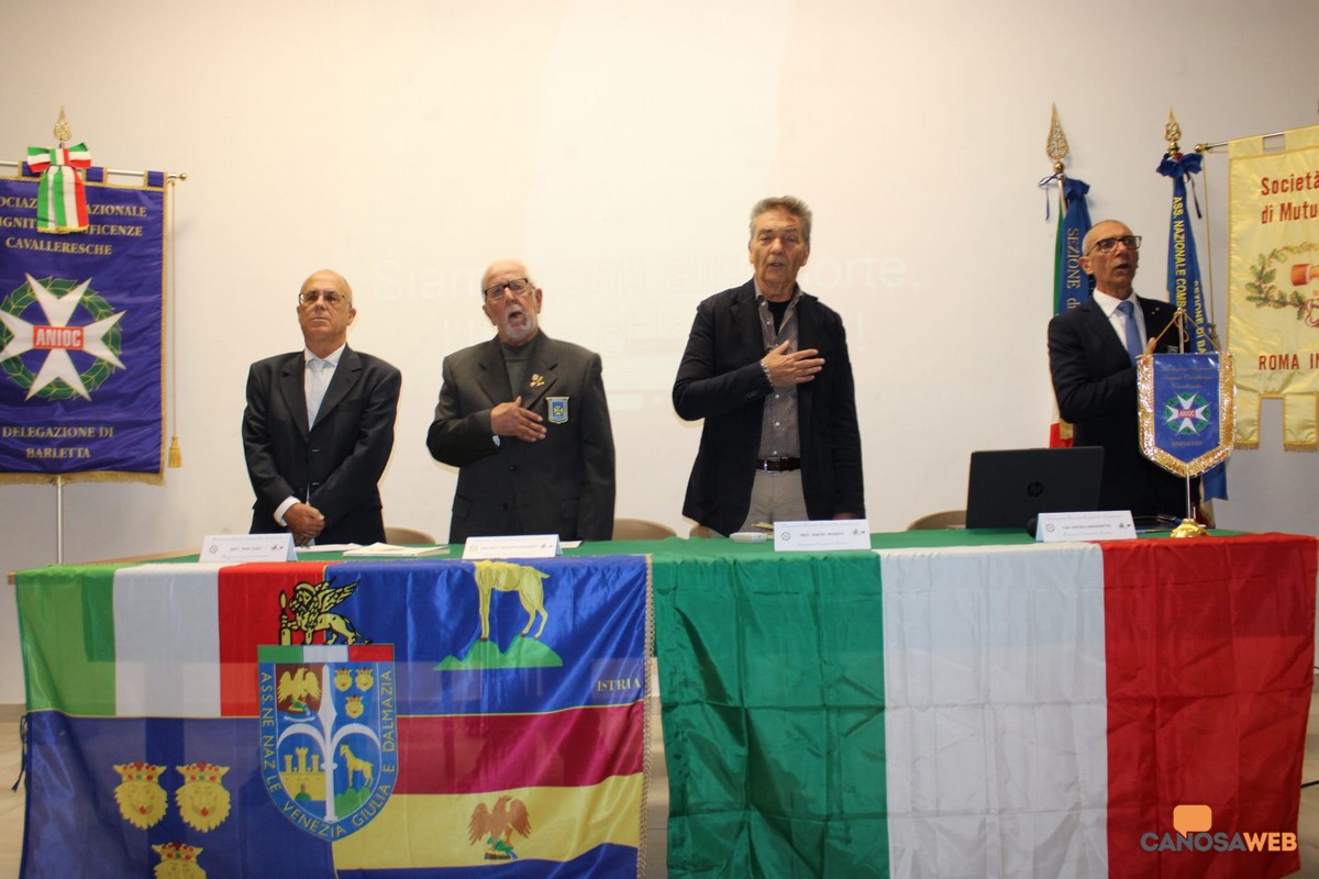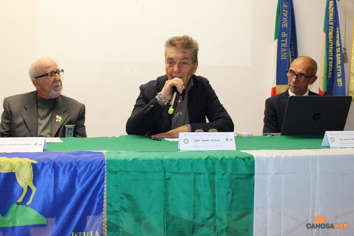 Larga partecipazione di pubblico, con molti rappresentanti di associazioni d'arma, combattentistiche, socio- culturali e volontariato alla presentazione del saggio "Le trappole Balcaniche dalla Dalmazia al Friuli " scritto dal Cav. Dott. Giuseppe Dicuonzo (Sansa) che si è svolta a Barletta presso il Salone della Chiesa Santa Maria degli Angeli, lo scorso 3 ottobre. L'incontro storico-culturale è stato organizzato e promosso dall'Associazione Nazionale Insigniti Onorificenze Cavalleresche (ANIOC) Delegazione Comunale di Barletta, dalle Associazioni Libero Comune di Zara in Esilio, Dalmati italiani nel mondo. L'incontro aperto dal Cavaliere Savino Dibenedetto delegato ANIOC-Barletta, ha visto il giornalista Pino Curci in veste di moderatore e il professore Sabino Redavid, relatore storico che hanno dialogato con l'autore Giuseppe Dicuonzo. E' nato a Pola nel 1944 in un rifugio antiaereo quando sulla stessa città imperversavano i bombardamenti alleati, sopravvissuto ai pesanti bombardamenti, alle persecuzioni tedesche ed allo sterminio della pulizia etnica e del genocidio dei partigiani delle formazioni titine cui erano in qualche caso aggregate formazioni partigiane rosse italiane. Nel 1946, Giuseppe Dicuonzo ha attraversato con i genitori l'Adriatico sbarcando esule ad Ortona a Mare e raggiungendo poi Barletta con un treno merci. Ha pubblicato articoli e curato ricerche, conferenze e libri su argomenti prevalentemente storici della Venezia Giulia e Dalmazia, vincendo premi letterari internazionali.