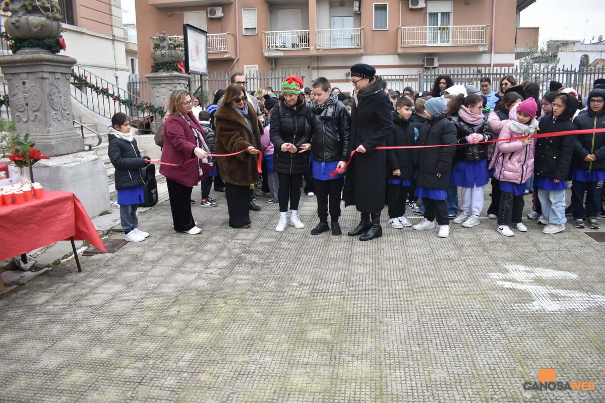 Quando Solidarietà fa rima con Comunità scolastica e cittadina che si è ritrovata, partecipando con sensibilità e generosità alla quarta edizione di "Christmas for ANT" - Delegazione di Canosa di Puglia "Giuseppe Lombardi" -, organizzata dall'Istituto Comprensivo "Foscolo-De Muro Lomanto-Mazzini" di Canosa di Puglia. Nella mattinata odierna, alla presenza dell'Assessore alla Cultura Cristina Saccinto, del parroco Don Michele Malcangio, della Dirigente Scolastica Nadia Landolfi, delle docenti, del personale ATA, dei genitori si sono svolti i mercatini della salute e della solidarietà a Km0 che hanno avuto luogo presso i cortili della Scuola "G. Mazzini" e della Scuola "E. De Muro Lomanto". Per i saluti e gli onori di casa la Dirigente Scolastica dottoressa Nadia Landolfi ha tra altro evidenziato che "la scuola è prima di tutto comunità, ed eventi come 'Christmas for ANT – Mercatini della Salute' ne rappresentano l'essenza più autentica. Giunto alla sua quarta edizione, questo progetto è una testimonianza viva di solidarietà, collaborazione e cittadinanza attiva. Un ringraziamento speciale va alla docente referente, promotrice dell'iniziativa insieme alla dottoressa Carmen Lombardi, che ha contribuito sin dalla nascita a costruire e rafforzare questo percorso di valore. Anche se oggi non presente fisicamente, la sua presenza si sente in ogni dettaglio del progetto. Grazie ai docenti, agli alunni, alle famiglie e a tutte ditte che hanno sostenuto con entusiasmo e generosità questa iniziativa. È grazie a ciascuno di loro se il Natale può essere non solo una festa, ma un'occasione concreta di bene condiviso."