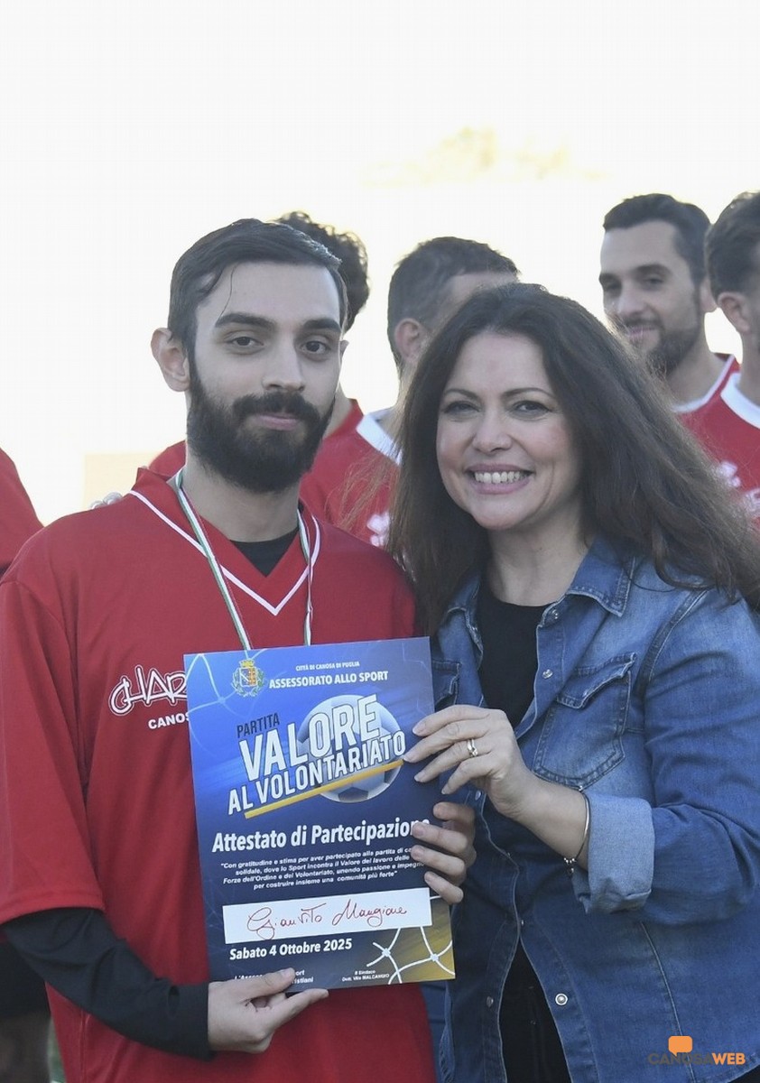 Larga partecipazione di rappresentanti dell'Amministrazione Comunale, tra i quali il sindaco Vito Malcangio per i saluti istituzionali, delle Forze dell'Ordine, delle associazioni di volontariato e protezione civile che sono scesi in campo, lo scorso sabato 4 ottobre, per l'iniziativa fortemente voluta dall'Assessora allo Sport del Comune di Canosa di Puglia. "L'evento 'Valore al Volontariato' - spiega l'Assessora allo Sport, dott.ssa Antonietta Cristiani - ha rappresentato un momento davvero speciale per la nostra comunità. Vedere insieme, sul campo dello Stadio Comunale 'San Sabino,' rappresentanti delle Forze dell'Ordine, del volontariato, della Protezione Civile e dell'Amministrazione Comunale è stato un segno concreto di collaborazione e di unità. Attraverso lo sport abbiamo voluto celebrare l'impegno silenzioso ma straordinario di tanti cittadini che ogni giorno donano tempo, energia e cuore per il bene comune. Ringrazio di cuore tutti coloro che hanno partecipato e contribuito alla perfetta riuscita della manifestazione: è stata una giornata di condivisione, entusiasmo e autentico spirito comunitario - conclude la Cristiani - che ci incoraggia a proseguire su questa strada di sinergia e solidarietà"