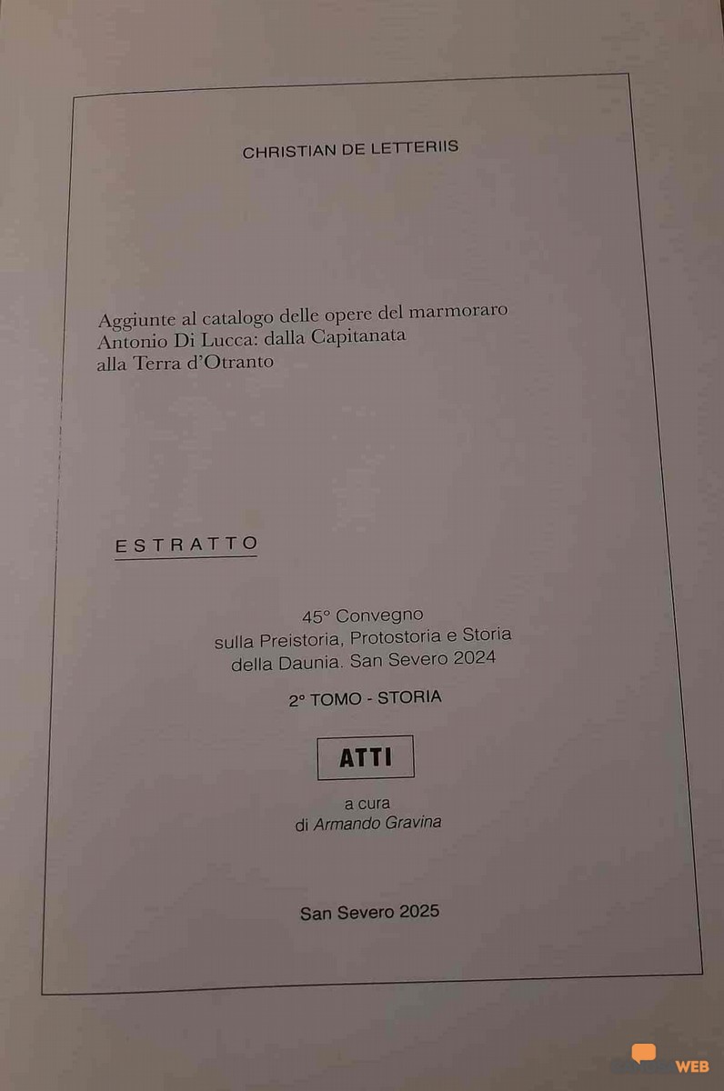 L’Estratto del 45° Convegno sulla Storia della Daunia di San Severo 2024 del Professor Christian de Letteriis