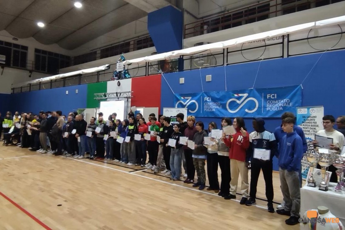 È stata una domenica appassionante, unica, indimenticabile nella storia del ciclismo pugliese, carica di entusiasmo e partecipazione, quella che il movimento ciclistico targato Comitato Regionale della Federazione Ciclistica Italiana ha festeggiato lo scorso 30 novembre a Giovinazzo presso il "PalaPalmiotto". Un appuntamento reso possibile grazie al supporto di prestigiosi partner: Fondazione «Stefano Fumarulo», AQP - Acquedotto Pugliese, #weareinpuglia, Vaimoo, Laurito Resort&Spa, Impregico, FFitness, C.R. Srl - Gruppo Casucci, Acmei e il quotidiano L'Edicola come media partner. La mattinata è stata dedicata a momenti di approfondimento, con un incontro particolarmente significativo, a cui hanno preso parte il Presidente della Federazione Ciclistica Italiana Cordiano Dagnoni, il Commissario Tecnico della Nazionale femminile Marco Velo, la campionessa del mondo e collaboratrice tecnica della nazionale donne Marta Bastianelli, i tecnici regionali Michele Laddomada e Leonardo Piepoli. Il dibattito ha permesso un dialogo costruttivo tra atleti, tecnici e genitori, focalizzandosi sulle esigenze e le prospettive del ciclismo giovanile e di base.