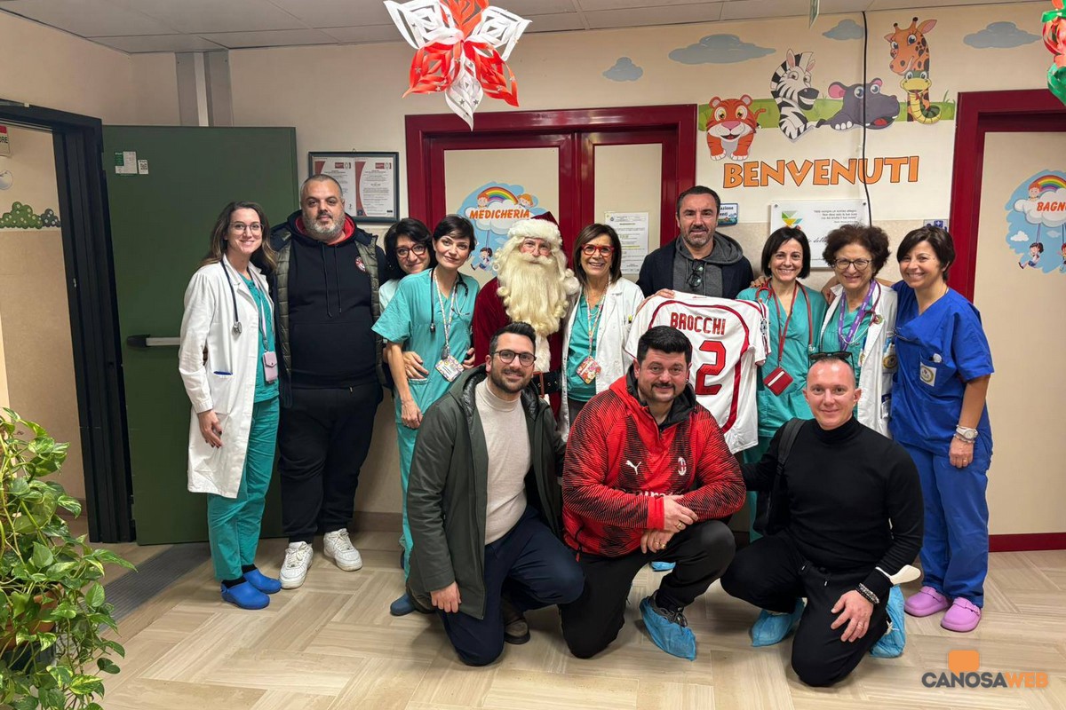 Alla vigilia di Natale una delegazione del Milan Club Canosa ha visitato il Reparto di Oncoematologia Pediatrica della Casa Sollievo della Sofferenza IRCCS di San Giovanni Rotondo per "Portare un sorriso speciale" nei reparti ospedalieri di pediatria unitamente ai rappresentanti del Milan Club'Paolo Maldini' di Manfredonia e dell'Associazione Agape e Cristian Brocchi, campione del passato rossonero, uomo generoso e di cuore. Un'iniziativa che si ripete e consolida per donare momenti di gioia e serenità ai bambini ricoverati e al contempo sostenere l'impegno dell'Associazione Agape, "all'amore fraterno" dedicato alla solidarietà e al sostegno delle famiglie degli ammalati nei momenti più delicati e difficili. Tra sorrisi ed abbracci, i bambini hanno ricevuto i regali da Babbo Natale, in un clima di condivisione e solidarietà caratterizzato dai significativi valori umani e sociali. "Il Milan è famiglia. Insieme, il bene vince sempre. Il Milan unisce, il cuore vince sempre!" Ha concluso Ivan Matarrese, presidente del Milan Club di Canosa di Puglia, augurando un felice e prospero 2026 mentre fervono i preparativi per il pranzo sociale di domenica 4 gennaio, il primo di una lunga serie di eventi programmato per il nuovo anno. Happy New Year!